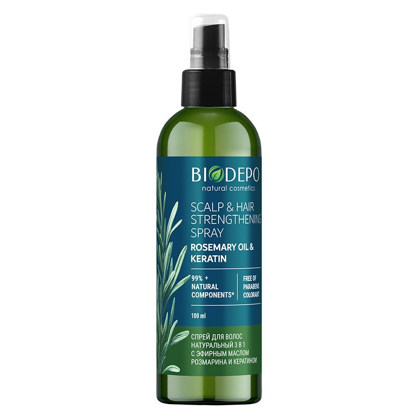 Biodepo спрей для волос натуральный 3 в 1 с эфирным маслом розмарина и кератином 100 мл