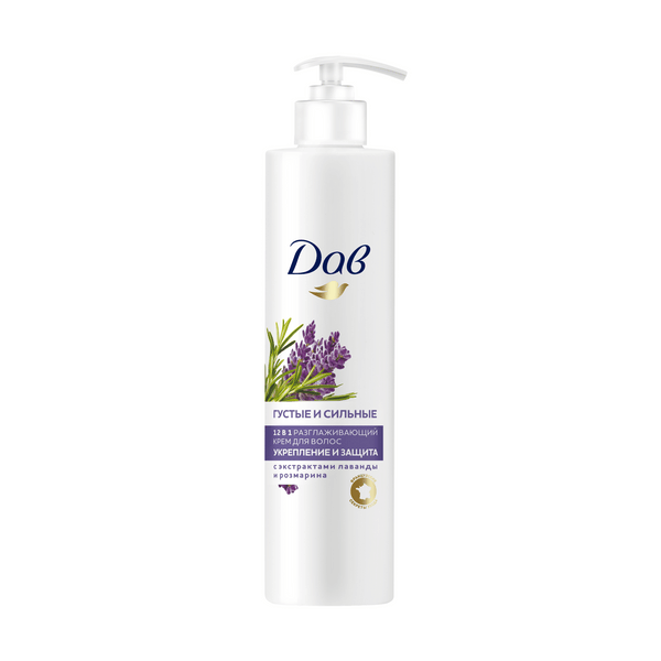 Секреты ухода за волосами из самой Франции вдохновили нас на создание коллекции Дав Секреты питания, чтобы каждая женщина могла открыть для себя ритуалы красоты и попробовать глубокое' питание от Дав, в сочетании с экзотическими натуральными ингредиентами, такими как экстракты лаванды и розмарина. Разглаживающий крем для волос Дав Густые и Сильные с экстрактами лаванды и розмарина 12в1 — это настоящий эликсир красоты, который подарит вашим локонам нежность и заботу, превратив уход за волосами в истинное удовольствие! Многофункциональный уходовый крем для волос несмываемый обладает 12 незаменимыми свойствами: обеспечивает восстановление и укрепление волос, интенсивно питает, защищает локоны от повреждений и сухости. Средство обеспечивает эффект термозащиты", сокращает ломкость и количество секущихся кончиков, придает блеск и гладкость волосам. Несмывашка для волос увлажняющая делает локоны более послушными, облегчает создание укладки и обеспечивает легкое расчесывание. Несмываемый уход для волос женский дарит локонам приятный аромат и мгновенно преображает их. Питательный и восстанавливающий, термозащитный крем-реконструктор для волос для легкого расчесывания дарит увлажнение сухим волосам, а также эффект гладкости. Средство для волос от пушистости увлажняющее 12 в 1 подходит для любого типа локонов, в том числе для сухих, окрашенных и пористых. Результат: волосы более гладкие и сильные с 1-го применения.