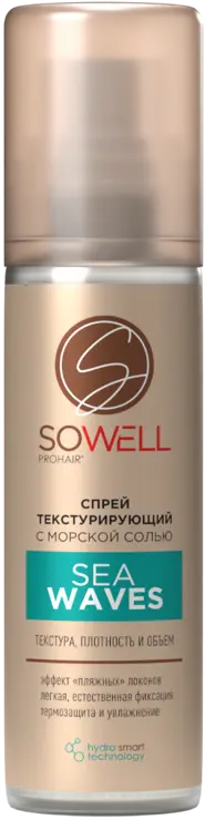 SoWell – новая профессиональная линия для укладки и ухода за волосами - универсальные, современные средства, с помощью которых так легко создавать разнообразные прически и поддерживать красоту волос. Текстурирующий солевой спрей для волос SoWell Sea Waves идеальный стайлинг для создания «пляжных» локонов. Придает волосам объем и нужную текстуру. Позволяет создать «пляжный» эффект на волосах любой длины и любого типа. Обладает средней фиксацией, но при разных техниках нанесения и комбинациях с другими средствами для стайлинга, может дать и более сильную фиксацию. Дает возможность применения на сухих и влажных прядях в том числе на 2-ой день для освежения укладки.* Содержит супер увлажняющий комплекс Hydro Smart Technology**, правильно подобранные компоненты и пропорции которого обеспечивают настоящую защиту от обезвоживания и укрепление структуры волос всех типов, а также поддерживают гидролипидный баланс кожи головы. Витамины и активные минералы морской соли в составе формулы позаботятся о красоте и здоровье волос.* Результат – естественная, непринужденная укладка без склеивания, с сохранением подвижности волос в течение дня и свежим ароматом.