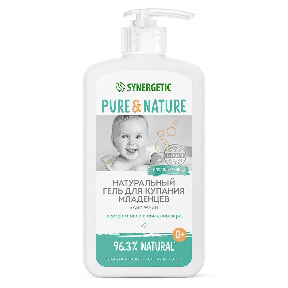 Synergetic натуральный гипоаллергенный гель для купания младенцев 0+ 500 мл