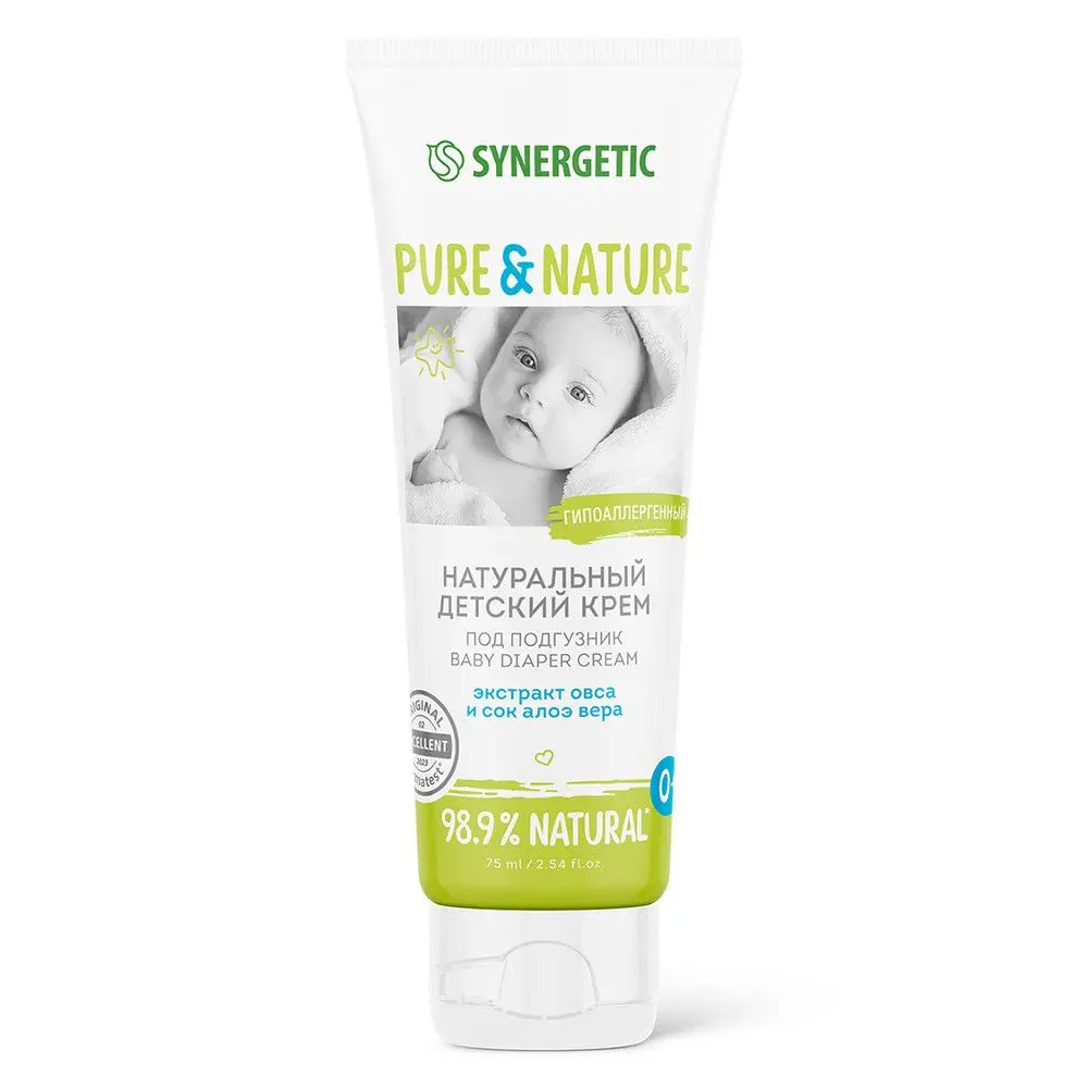 Synergetic натуральный гипоаллергенный детский крем под подгузник 0+ 75 мл