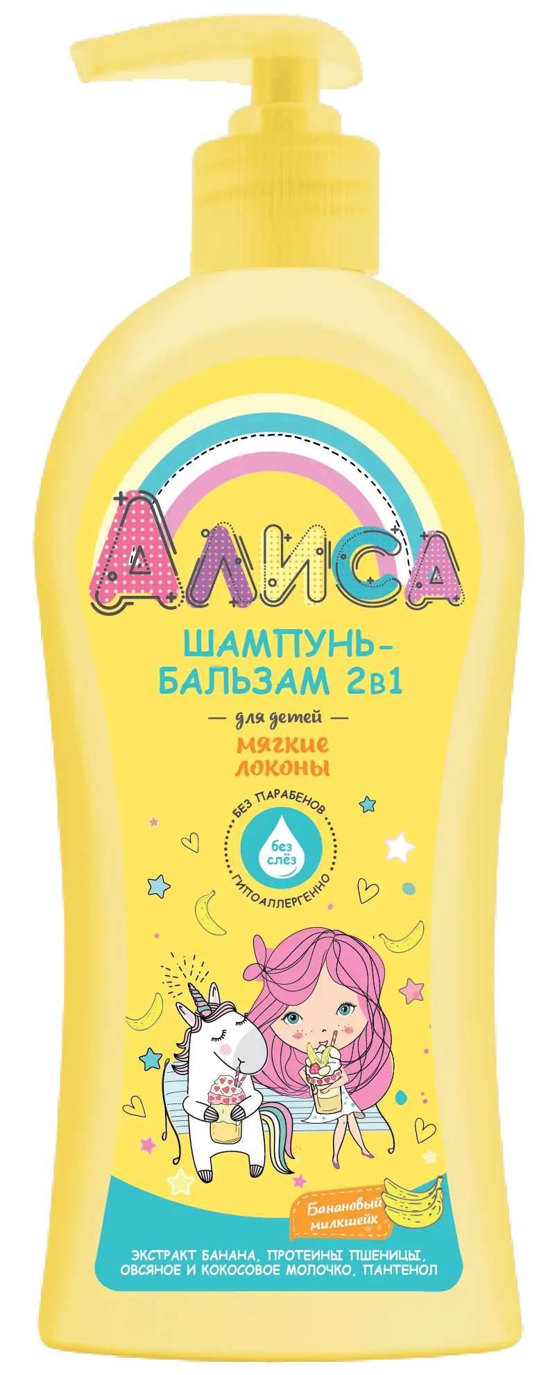 Алиса шампунь бальзам для детей 2 в1 мягкие локоны 350 мл