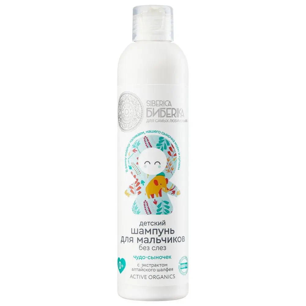 Детский шампунь без слез для мальчиков «Чудо-сыночек». Ваш любименький малыш нуждается в трепетном уходе и нежной заботе! Подарите ему всё самое лучшее, что даёт нам природа. Детский шампунь без слез бережно очищает и ухаживает за непослушными волосами, не раздражает кожу и не щиплет глазки. Натуральные компоненты сибирских растений питают и насыщают волосы полезными веществами.