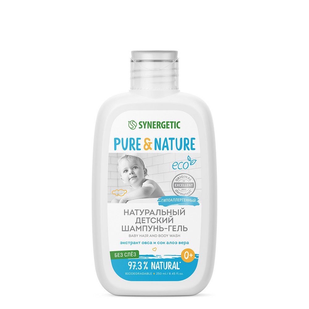 Натуральный гипоаллергенный детский шампунь-гель для волос и тела 0+ «без слез» SYNERGETIC бережно очищает нежную кожу и волосы малыша. Мягкая формула, специально разработанная для младенцев, не раздражает глаза. Безопасная, эффективная и гипоаллергенная формула содержит молочную кислоту, софоролипид и пребиотики инулин и трегалозу, которые бережно очищают кожу, нормализуют и сохраняют естественный микробиом. Бисаболол успокаивает и помогает восстановить барьерные функции кожи. Экстракт овса – это природный эмолент с выраженными антиоксидантными свойствами, питательный, увлажняющий, защищающий и восстанавливающий естественную среду нежной детской кожи. Сок алоэ вера питает и увлажняет кожу, а масло сладкого миндаля регулирует гидролипидный баланс, предотвращая появление сухости, раздражения и шелушения.