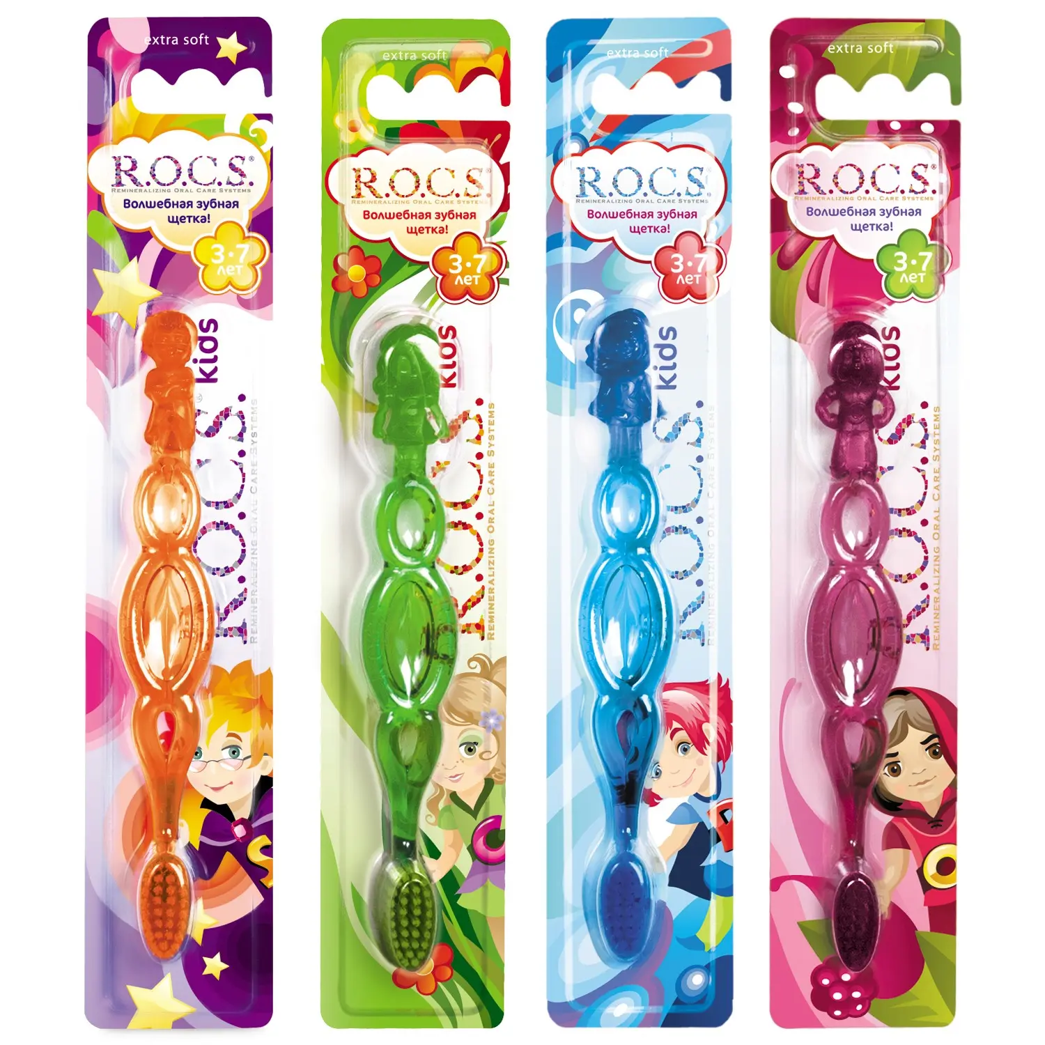 Необычная зубная щетка R.O.C.S. Kids предназначена для детей в возрасте от 3 до 7 лет. Она разработана при участии стоматологов, обеспечивает качественную гигиену полости рта и отличается необычным дизайном, который, наверняка, понравится ребенку.