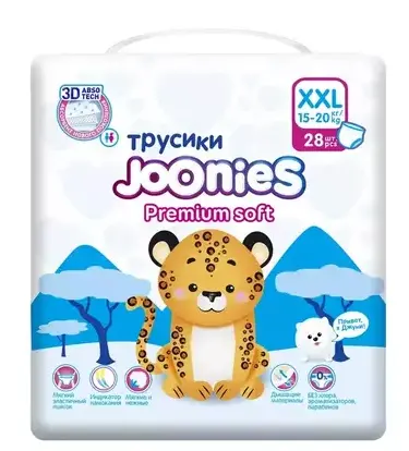 JOONIES premium soft подгузники трусики размер xxl 15-20 кг 28 шт