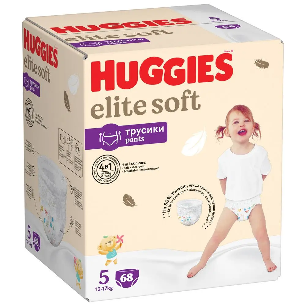 Huggies Elite Soft подгузники трусики 12-17 кг 5 размер 68 шт