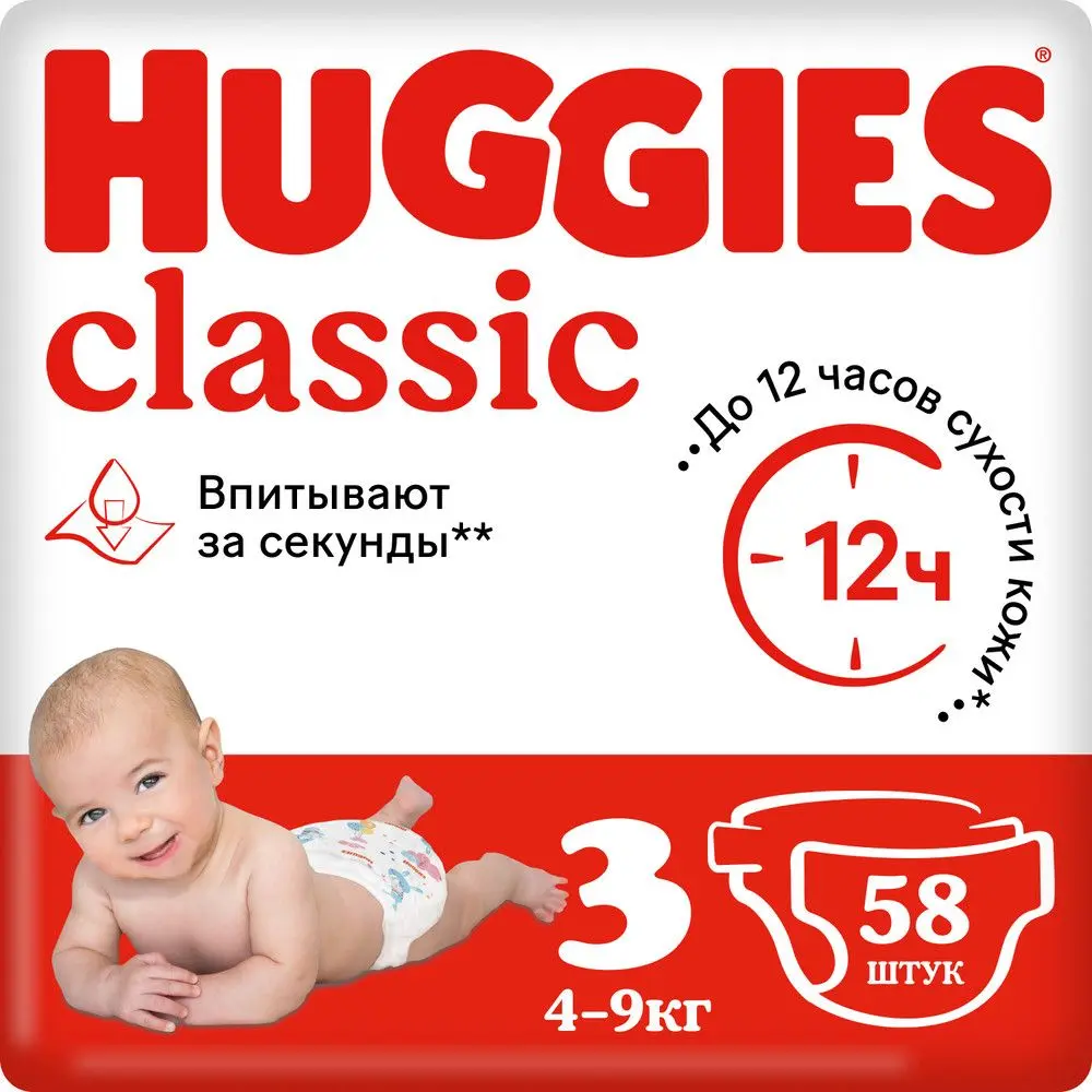 Huggies Classic подгузники 3 4-9 кг 58 шт