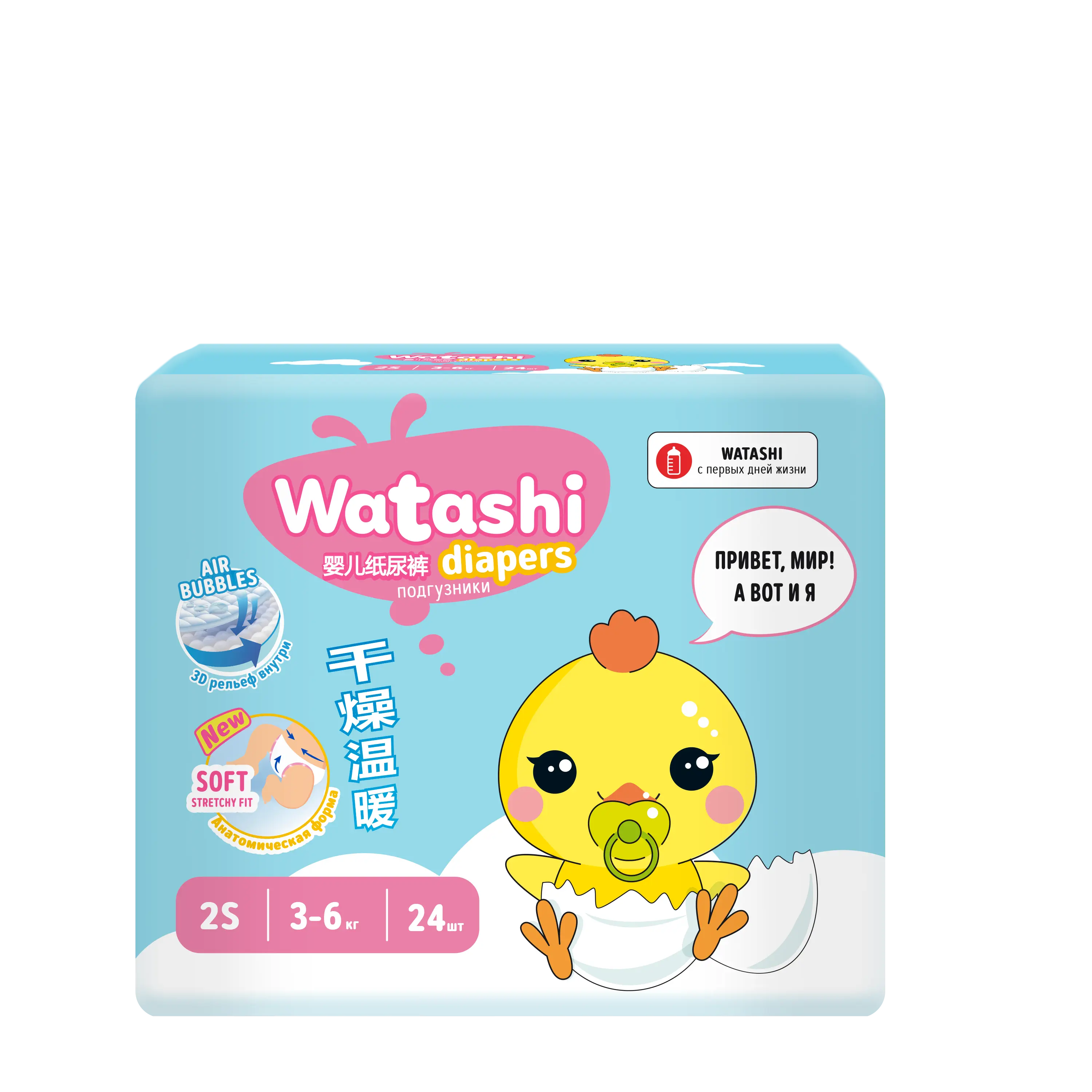 Подгузники WATASHI нового поколения разработаны по японской технологии.