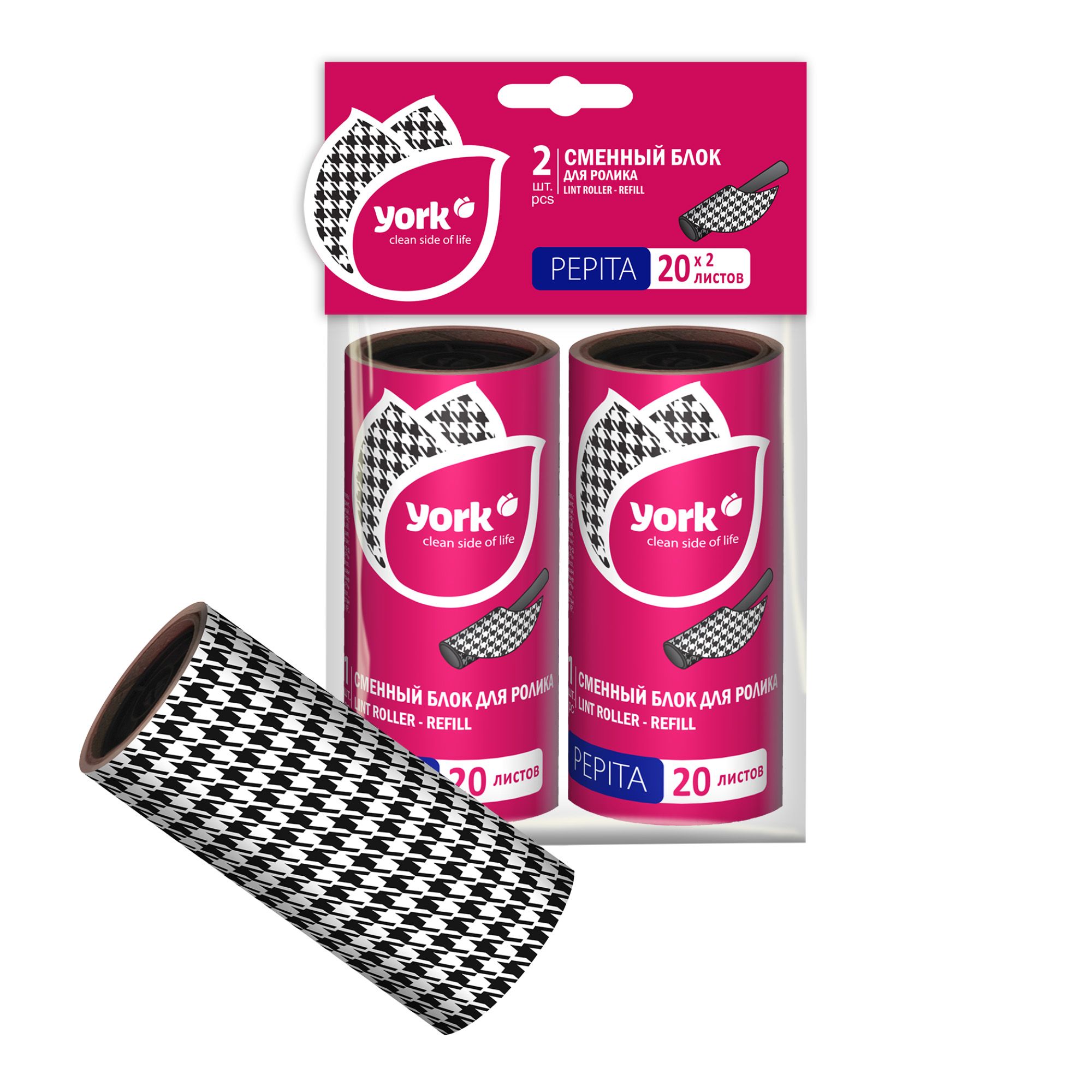 York сменный блок для ролика щётки 20 листов стайл пепита 2 шт