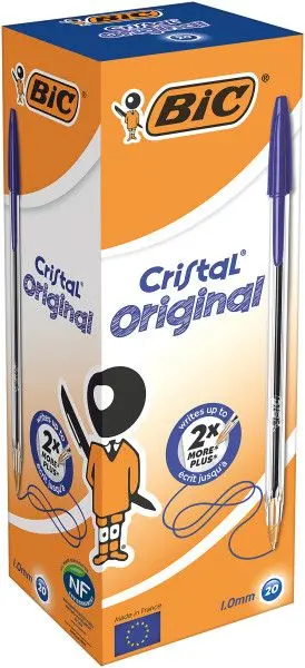 Классическая BIC Cristal Original является одной из самых продаваемых шариковых ручек в мире и представлена в синем, красном, зелёном и чёрном цветах. Средний пишущий узел диаметром 1 мм скользит по странице с непревзойденным комфортом, обеспечивая мягкое письмо без клякс. Прозрачный корпус для проверки уровня чернил - один из элементов функционального, простого и надёжного дизайна BIC, которому доверяют. Синих или чёрных чернил этой долговечной ручки в среднем хватает на 3 километра письма. Ручка изготовлена из минимального количества сырья и отмечена эко-сертификатом NF Environnement