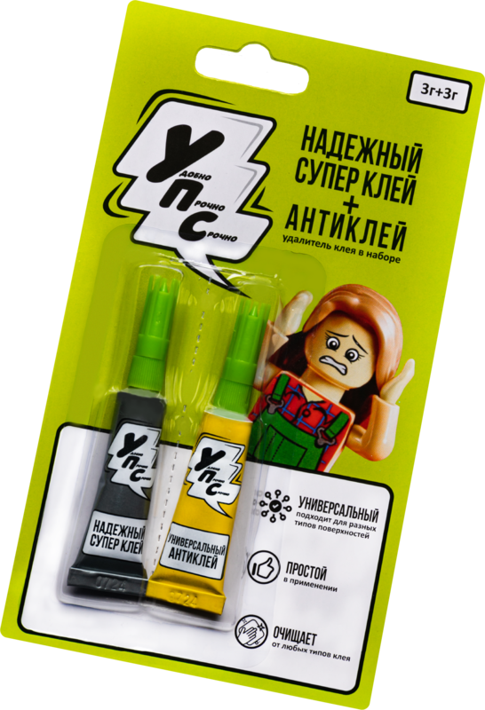 Супер клей УПС надёжно склеивает изделия из различных материалов в любом сочетании: пластмасса, кожа, металл, резина, дерево, керамика, пробка, фарфор.