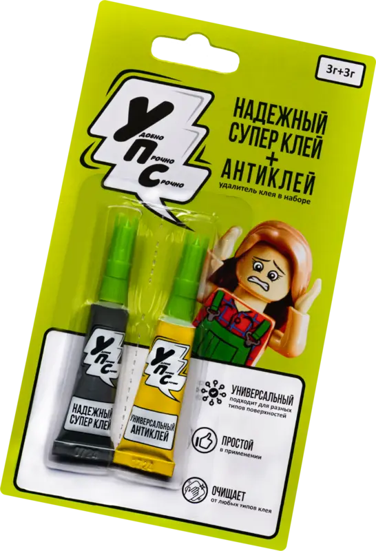 Упс супер клей антиклей на блистере в шоубоксе 12 шт 3 г+3 г