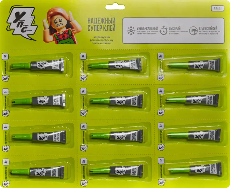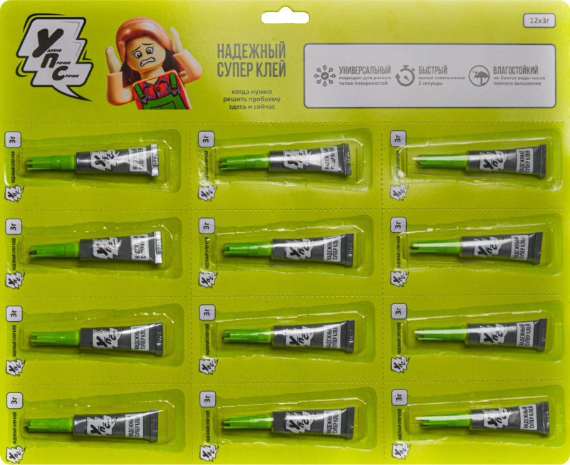Супер клей УПС надёжно склеивает изделия из различных материалов в любом сочетании: пластмасса, кожа, металл, резина, дерево, керамика, пробка, фарфор.