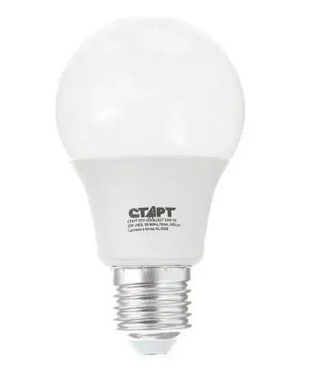 Светодиодная лампа СТАРТ подходит к большинству осветительных приборов, укомплектованных цоколем Е27. Используется в помещениях для основного или декоративного освещения и является самой эффективной заменой лампам накаливания. Широкий спектр использования и герметичность корпуса делают ее универсальным источником света с низким уровнем энергопотребления. Эстетика и удобство использования Конструкция лампы герметична и позволяет использовать ее не только в жилых помещениях, но и в уличных осветительных приборах. Благодаря матовой колбе, свет распространяется равномерно, без эффекта мерцания. Лампа имеет широкий угол рассеивания света с цветовой температурой свечения 4000К.