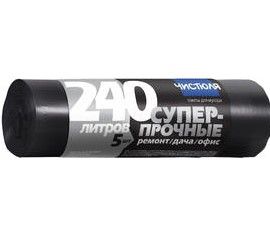 Чистюля пакеты для мусора суперпрочные ремонт дача офис 240 л 5 шт
