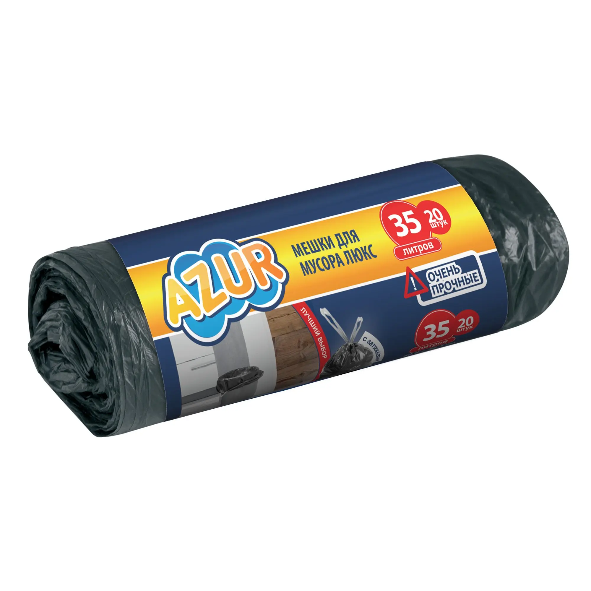 Azur мешок для мусора 35 л 20 шт черные люкс с завязками