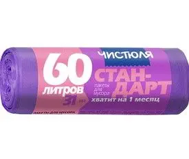 Чистюля пакеты для мусора в рулоне стандарт 60 л*31 шт