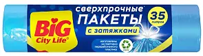 BIG City Пакеты для мусора с затяжками сверхпрочные 35л синие 15 шт