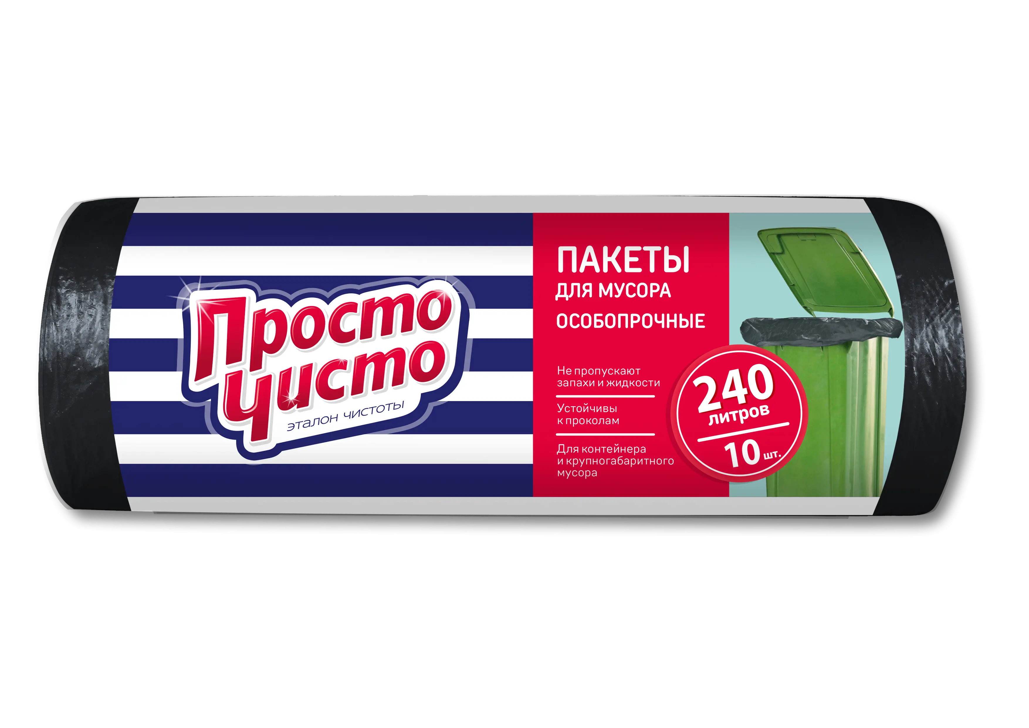 Просто Чисто пакеты для мусора особопрочные 240 л 10 шт