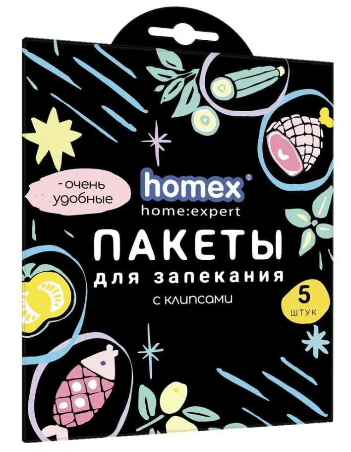 Homex пакеты для запекания Очень удобные универсальные с клипсами 30см*40см 5 шт