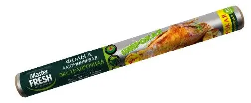Экстра прочная алюминиевая фольга Master FRESH подходит для запекания, упаковки и хранения продуктов.