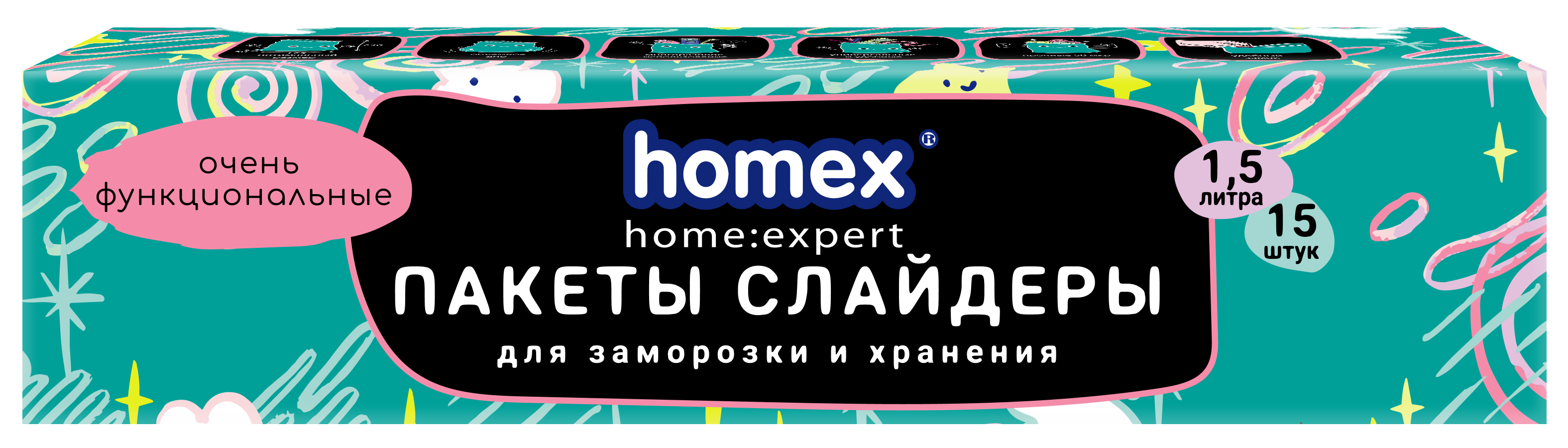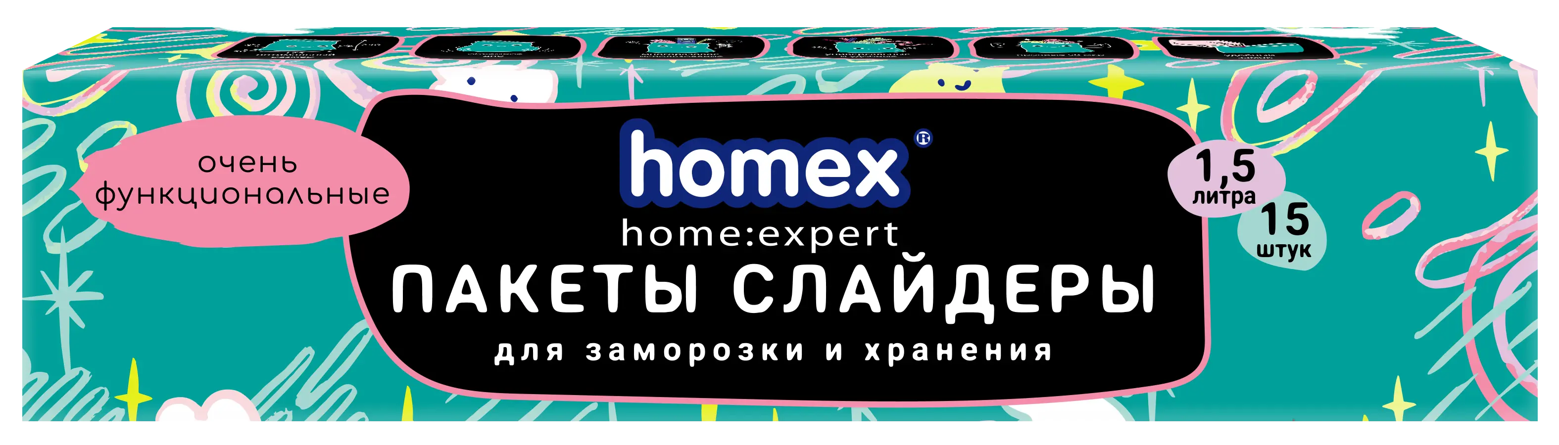 Homex пакеты слайдеры очень функциональные 1,5 литра 15 штук