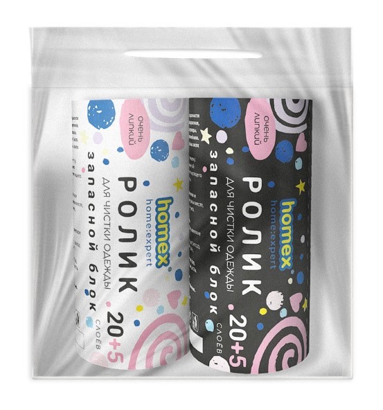 Homex запасной блок для чистки одежды Очень Липкий 20+5 листов 2шт