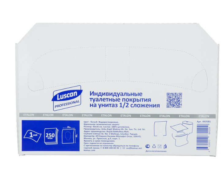 Luscan покрытия для унитаза одноразовые 250 шт пач, 1/2 сл ZZ лист 410*370
