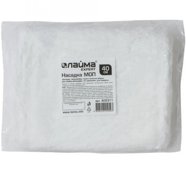 Laima expert насадка моп плоская для швабры/держателя 40см, уши/карманы (ТИП У/К), м-фибра,