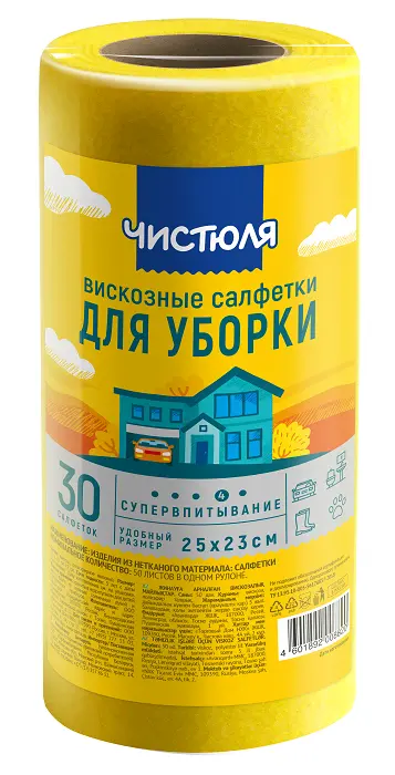 Чистюля салфетки вискозные многоразовые для уборки в рулоне 30 шт