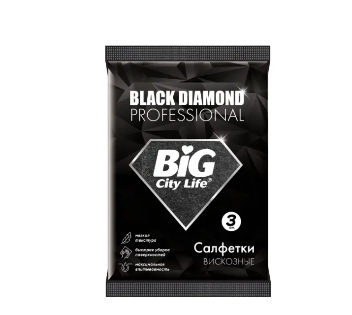 BIG City салфетки вискозные черные black diamond 3 шт