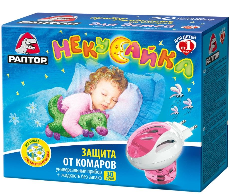РАПТОР некусайка комплект прибор жидкость от комаров 45 ночей для детей