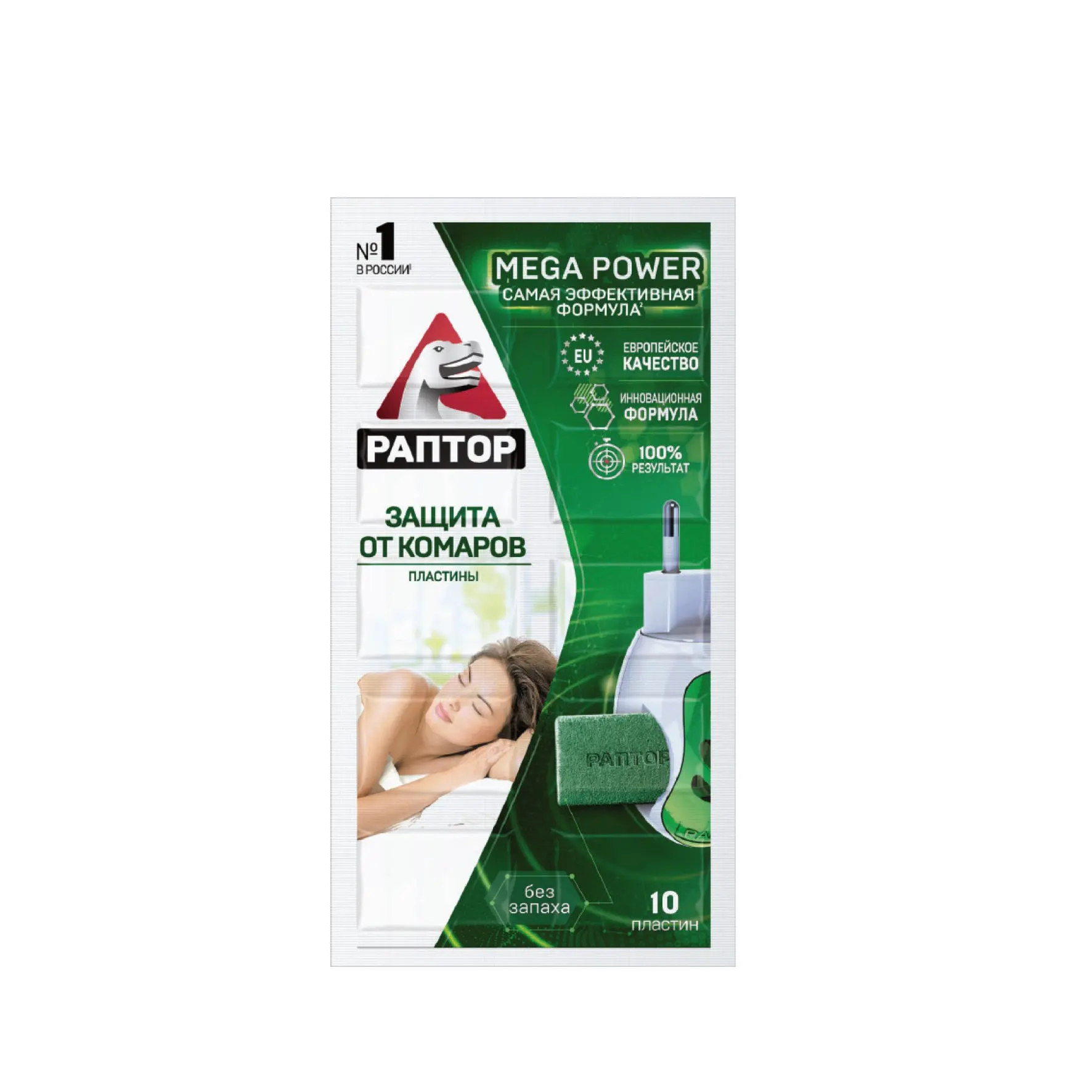 РАПТОР Пластины от комаров НОВАЯ ФОРМУЛА без запаха в мини-прилавке
