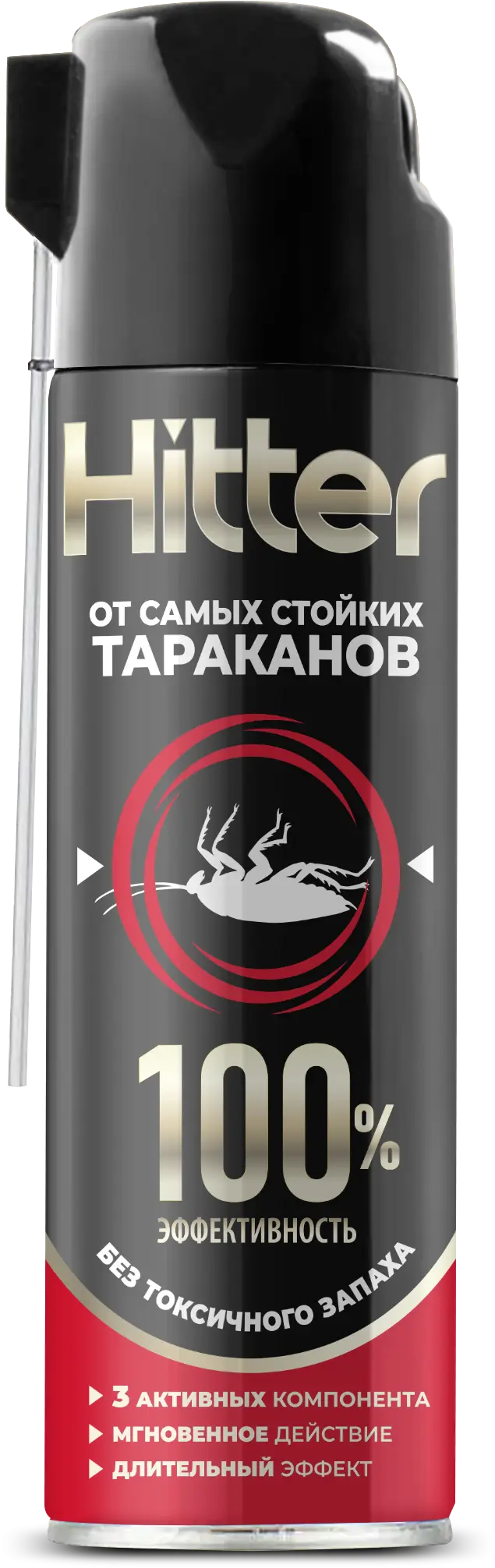 Аэрозоль HITTER от самых стойких тараканов – избавит даже от тараканов, выработавших резистентность (устойчивость) к другим средствам от насекомых. Формула из 3х активных компонентов, а также из специального вещества (синергиста), усиливающего инсектицидное действие – гарантируют победу в борьбе с вредителями. 100% эффективность доказана испытаниями НИИД РОСПОТРЕБНАДЗОРА РФ.