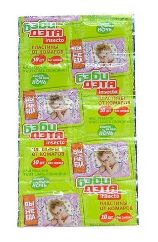ДЭТА INSECTO БЭБИ пластины от комаров 10 шт