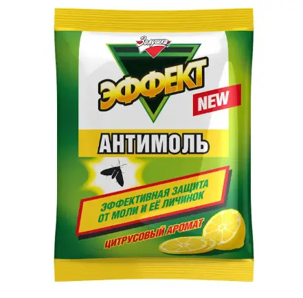 Эффект-Антимоль надёжно защищает вашу одежду, изделия из меха и шерсти от моли и её личинок, придавая вещам приятный аромат.