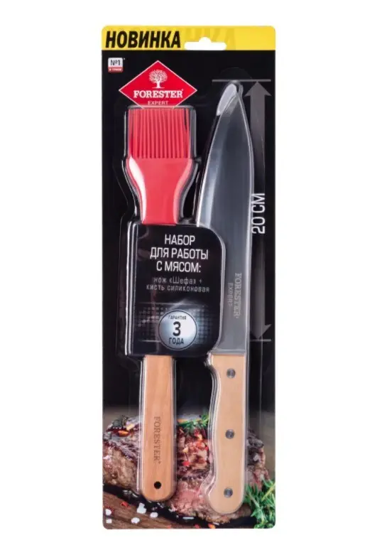 Forester Набор для работы с мясом (нож шефа 33 см + силиконовая кисть)