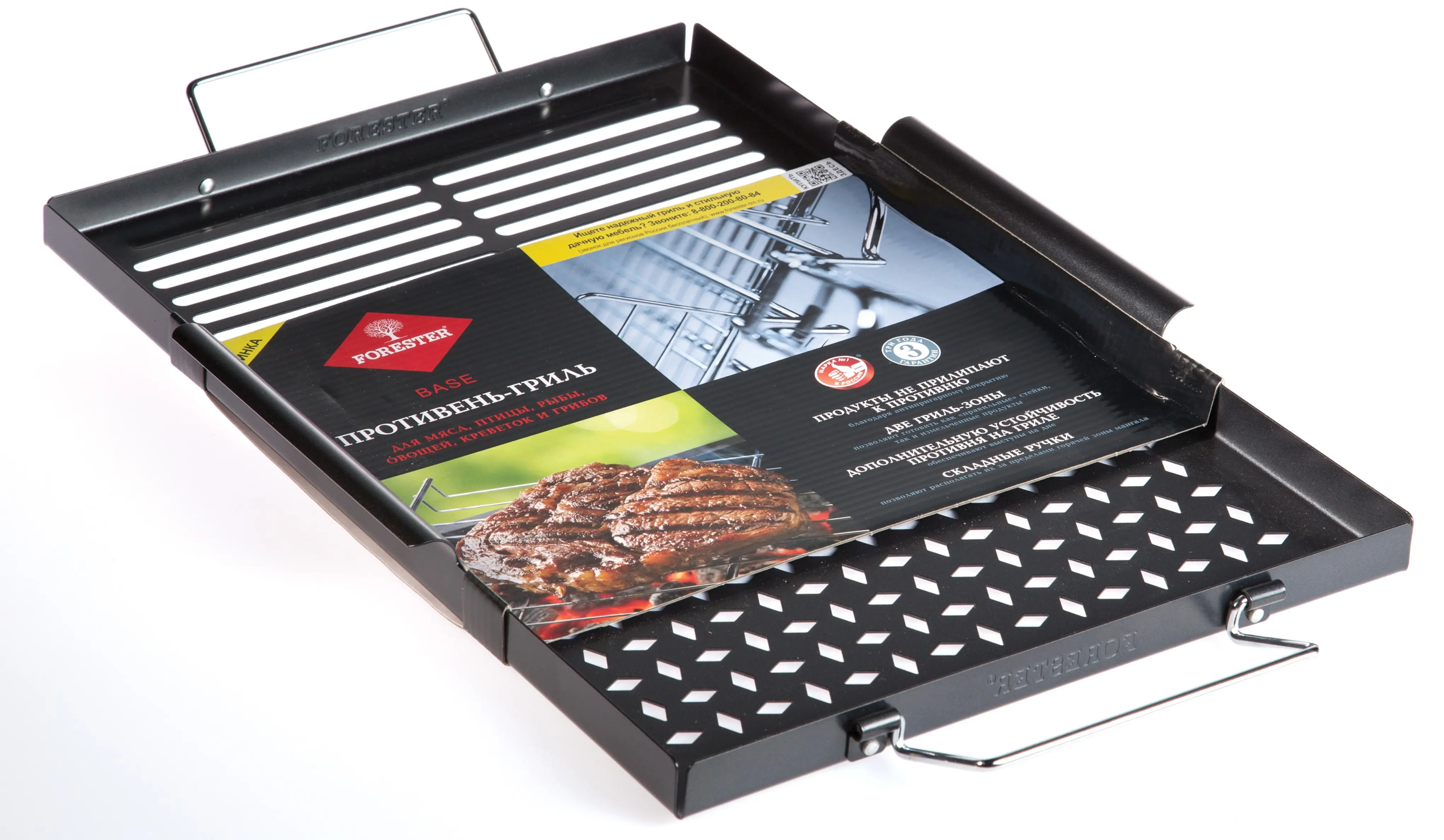• продукты не прилипают к противню благодаря антипригарному покрытию, • две гриль-зоны позволяют готовить как «правильные» стейки, так и измельченные продукты, • дополнительную устойчивость противня на гриле обеспечивают выступы на дне, • складные ручки позволяют располагать их за пределами горячей зоны мангалаСковорода-гриль FORESTER c антипригарным покрытием