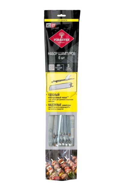 Forester набор шампуров средних никелированная сталь в zip-пакете 6шт