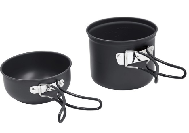 котелок с крышкой-миской изготовлены из анадированного алюминия, благодаря чему он легок и устойчив к царапинам.
