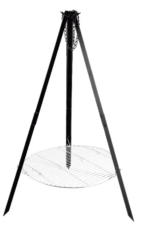 костровая тренога предназначена: для размещения котелка, чайника, казана и другой посуды на крюках над костром; для размещения сковороды, кофеварки и другой посуды на решетке над костром/углями;