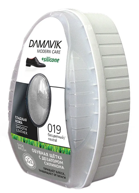 Обувная щетка «DAMAVIK» с дозатором силикона (губка с пропиткой в футляре) предназначена для чистки, придания блеска и водостойкости изделиям из кожи и кожзаменителей.