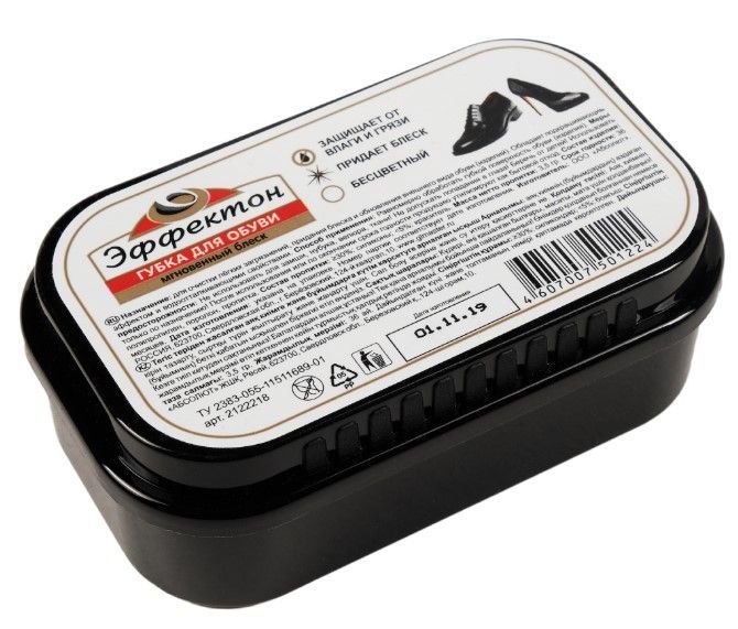 Чистая обувь ценилась всегда. Она подчёркивает презентабельность и аккуратность своего владельца.Губка от торговой марки «Эффектон» придаст обуви блеск, эластичность и обновит цвет кожи. Средство обеспечивает защиту от вредного воздействия влаги и соли, предохраняет от трещин и старения, защищает от загрязнения.