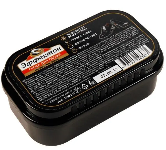 Губка от торговой марки «Эффектон» придаст обуви блеск, эластичность и обновит цвет кожи. Средство обеспечивает защиту от вредного воздействия влаги и соли, предохраняет от трещин и старения, защищает от загрязнения.