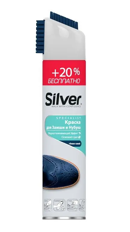 Silver cпрей краска восстановитель для замши и нубука синий 250 мл + 20 % бесплатно