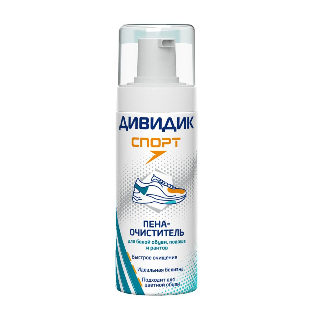 Пена-очиститель Дивидик Спорт позволяет быстро очистить загрязнения с кроссовок: пыль, грязь, остатки крема и т.п.Подходит для белой и цветной обуви.