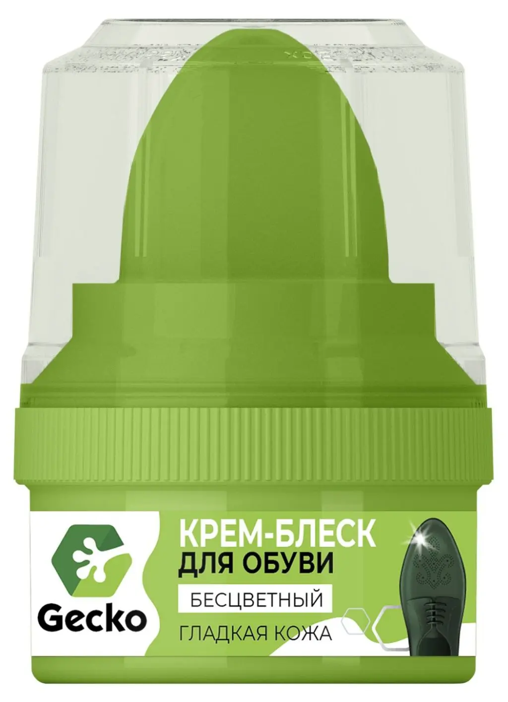 Крем блеск GECKO (ТМ НОМЕХ), для обуви из гладкой кожи. Объем 60мл. Цвет: бесцветный. ХАРАКТЕРИСТИКА: Для ежедневного ухода за обувью из гладкой кожи. Придает мгновенный блеск, не требует полировки. Формула на основе композиции из натуральных восков обеспечивает длительную защиту кожи от воздействия соли, влаги. Препятствует оседанию пыли. Специальные добавки эффективно предохраняют кожу от трещин. Обладает морозоустойчивым свойством.