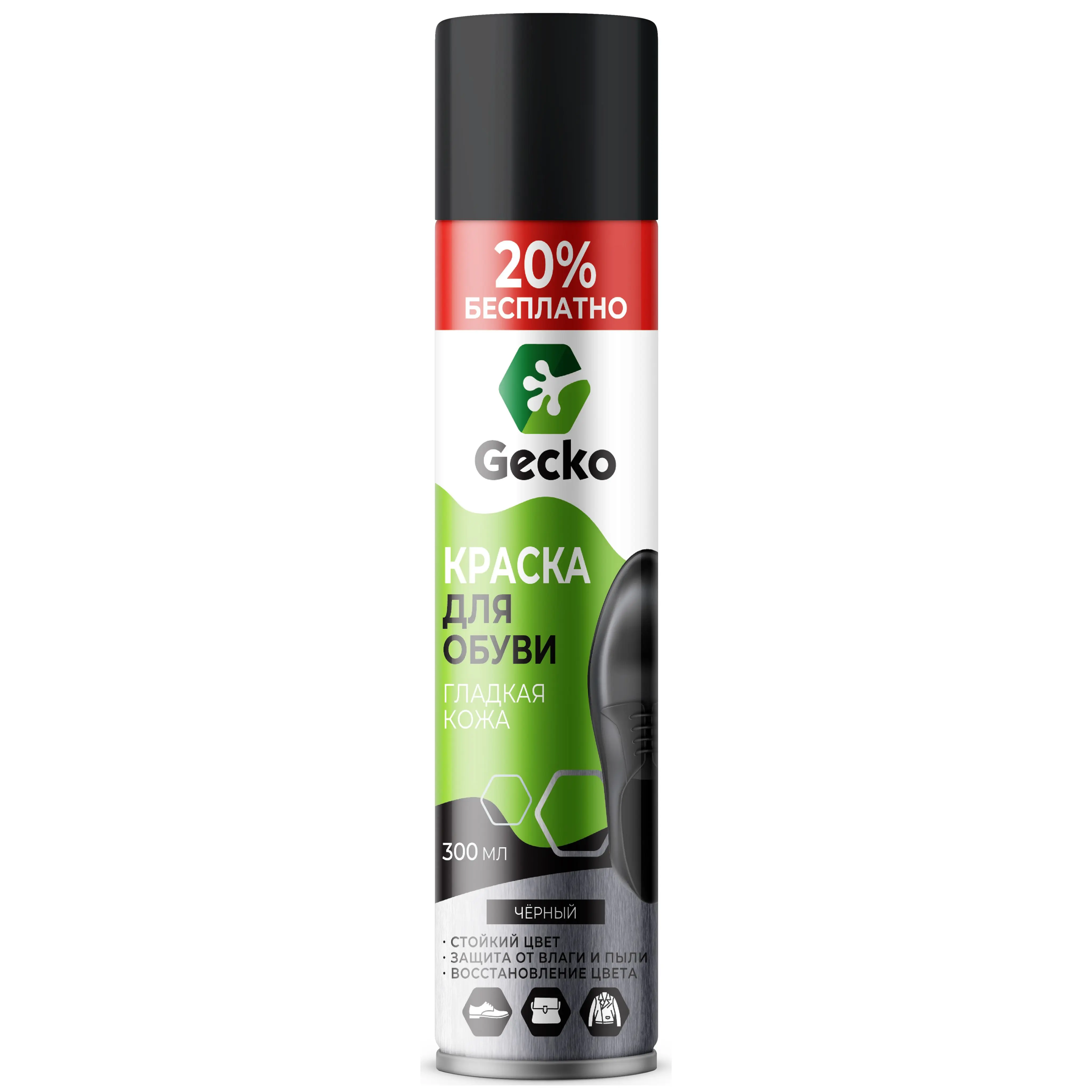 Аэрозоль-краска для обуви из гладкой кожи GECKO (ТМ НОМЕХ) - предназначена для окрашивания обуви и любых других изделий из гладкой кожи в черный цвет,