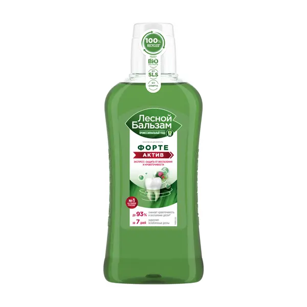 Профилактический ополаскиватель для полости рта Лесной бальзам Форте Актив с маслом чайного дерева в отличие от обычных ополаскивателей Лесной бальзам содержит повышенную концентрацию растительных компонентов для усиленного восстановления и питания десен в период появления первых признаков кровоточивости и воспаления десен. Эффективен в качестве поддерживающего курса после стоматологических процедур для восстановления десен в домашних условиях. Клинически-доказанный эффект*: 1) Уже с первого дня активирует собственный иммунитет полости рта, повышая естественную защиту зубов и десен от вредных бактерий. 2) В 2 раза снижает воспаление и кровоточивость десен. 3) Снижает отечность десен и болезненность мягких тканей полости рта 4) Поддерживает естественный баланс микрофлоры полости рта Особенности состава: Насыщенный растительный вкус. Содержит хвойных комплекс (на основе экстрактов пихты, живицы, можжевельника) с отваром 8 фитоэкстрактов, сок алоэ и усилен маслом чайного дерева. Богатый растительный состав продукта способствует снижению воспаления и отечности десен, блокирует развитие воспалительного процесса и стимулирует восстановление мягких тканей полости рта.